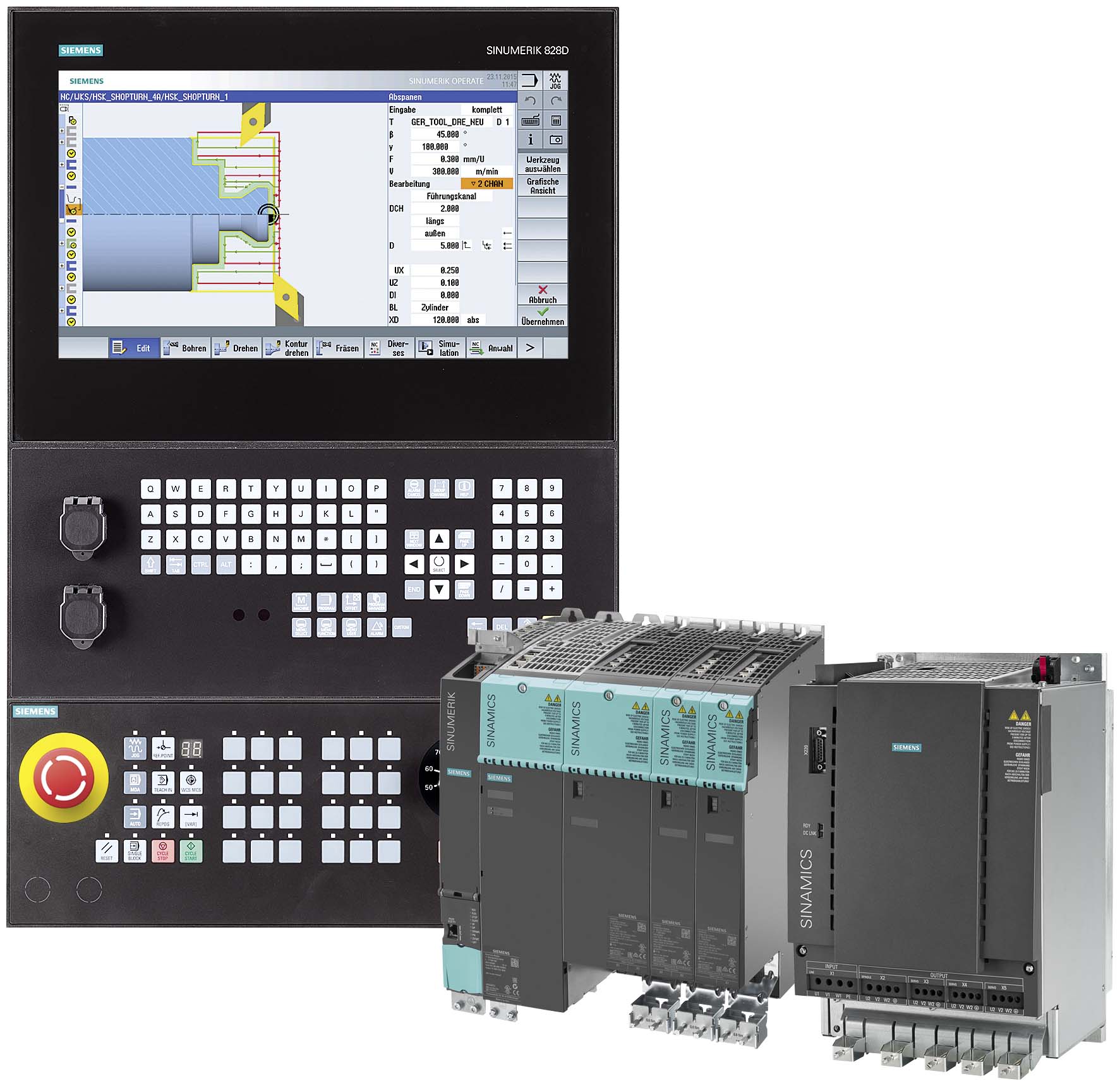 ??SINUMERIK 828D BASIC T數(shù)控系統(tǒng)完美地滿足了現(xiàn)代標(biāo)準(zhǔn)車床的需求。SINUMERIK 828D BASIC T具有強(qiáng)大的坐標(biāo)轉(zhuǎn)換功能和完整的工藝循環(huán),也是使用電動(dòng)刀頭進(jìn)行復(fù)雜加工應(yīng)用的理想選擇。